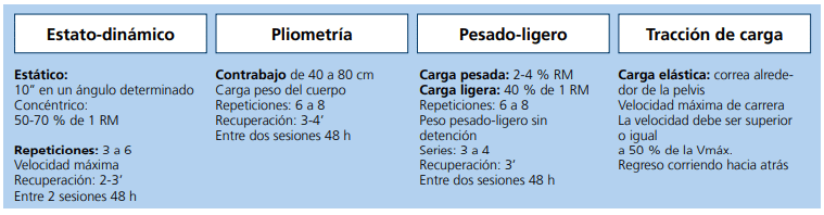 – De manera asociada, mediante la tensión muscular con una carga adicional seguida de ejercicios más dinámicos o de fuerza explosiva.