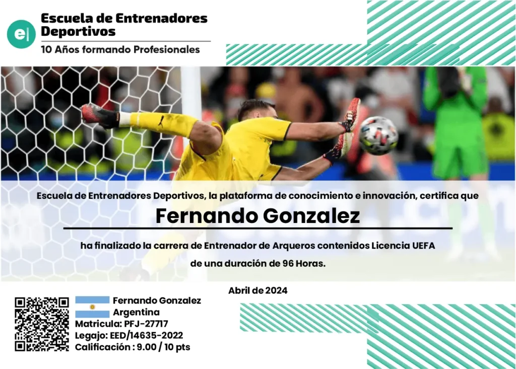 Este curso ofrece una formación basada en criterios metodológicos actuales y contenidos alineados a estándares UEFA, abordando la preparación del arquero en todas sus dimensiones: desde los fundamentos técnicos —atajadas, cruces, 1vs1, perfiles, despejes y distribución— hasta la integración táctica en ataque, defensa y transición.